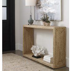 Equal parts relaxed and refined, this console table embodies casual coastal style. Wrapped in natural woven banana plant, creating unique texture and concentric color patterns. The airy open center allows for extra display space.